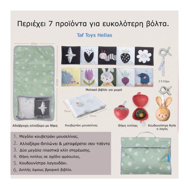 Τα προϊόντα Taf Toys είναι σχεδιασμένα για να ενισχύουν την αισθητηριακή ανάπτυξη, τη φαντασία και την κίνηση του μωρού, με ασφάλεια και ποιότητα σε κάθε λεπτομέρεια.